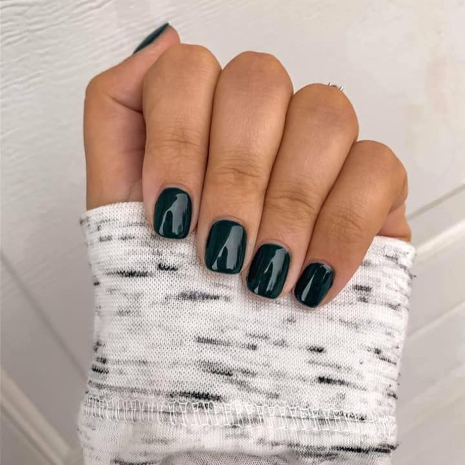 This dark green polish is precious as a gem with its pearly finish.